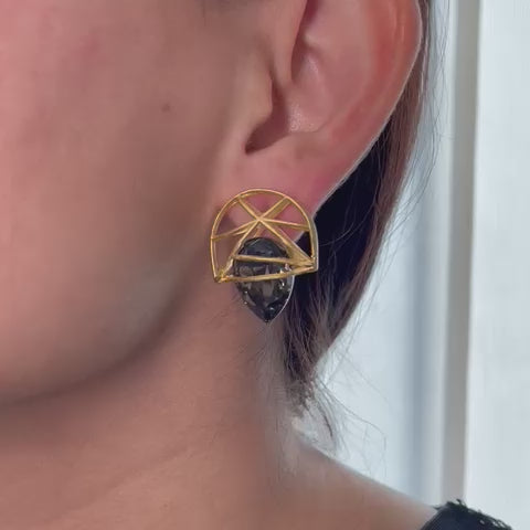These gold 3D geometric-shaped earrings feature a striking black Swarovski crystal at their center, adding a bold touch that elevates your look. Lightweight and easy to wear, they provide comfort without compromising on style, ensuring they won’t hurt your ears. Eye-catching and chic, this classy pair is versatile enough to complement any outfit, making them a must-have addition to your jewelry collection.
