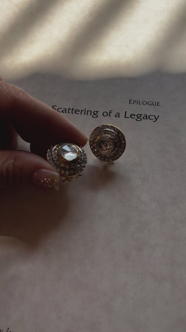 Noor Kundan Stud Earrings with a Kundan centerpiece, haloed by sparkling stones, exuding opulence and captivating allure