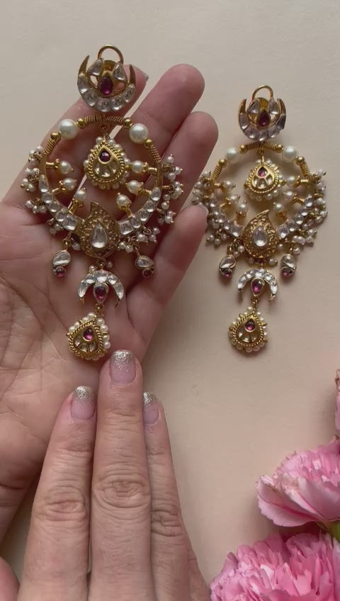 Adorned with lustrous beads and round pearls, Masuma earrings exudes timeless grace. A cluster of pearls, complemented by delicate pink stones, adds a touch of ethereal beauty, capturing the essence of romance. Small kundan accents further enhance the intricate detailing, elevating these earrings to a statement of exquisite craftsmanship.