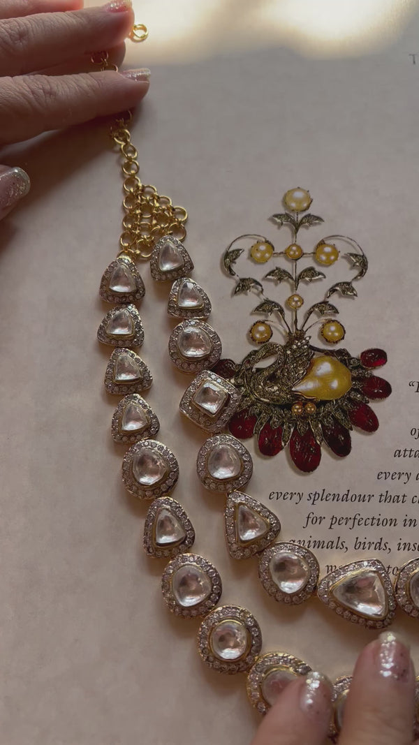 Adorn yourself in timeless elegance with our exquisite Mehreen necklace, meticulously handcrafted to perfection. Each radiant Kundan stone is set in a traditional design, reflecting centuries of craftsmanship and heritage.