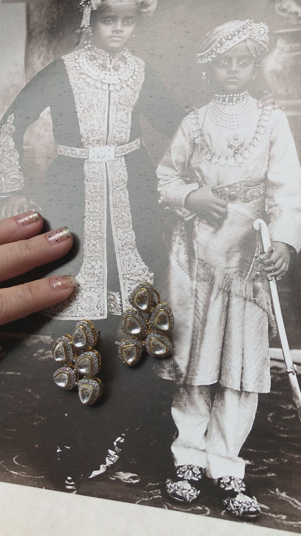 Indulge in the allure of our exquisite Rania Earrings, where mesmerizing kundan stones take center stage, surrounded by a delicate array of glistening white stones artfully arranged in an abstract pattern. Embrace timeless elegance with this captivating blend of tradition and modernity.